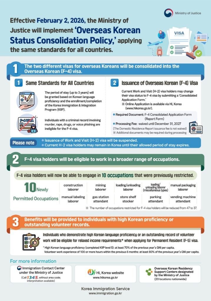H-2就労訪問ビザ H-2ビザは、韓国で指定された分野で就労することを目的とする海外同胞に発給されるビザです。このビザにより、対象者は就労訪問プログラムに基づき、一定の就労活動に従事することができます。 H-2就労訪問ビザは誰が申請できますか? H-2ビザは、就労訪問プログラムの資格要件を満たす海外同胞が一般的に申請できるビザです。申請者は、韓国系の血統および指定された雇用制度への参加に関する基準を満たす必要があります。 就労訪問プログラムに基づく申請資格の審査 韓国系血統およびプログラム参加状況の確認 雇用登録およびビザ手続きに関する案内 海外同胞の申請資格 申請者は、関連する出入国規定に基づき、海外同胞としての資格を証明する必要があります。 指定雇用分野 就労は、就労訪問プログラムへの参加が認められた指定分野で行われる必要があります。 在留および就労規定 在留期間および許可される就労活動は、関連する出入国規定に基づいて決定されます。